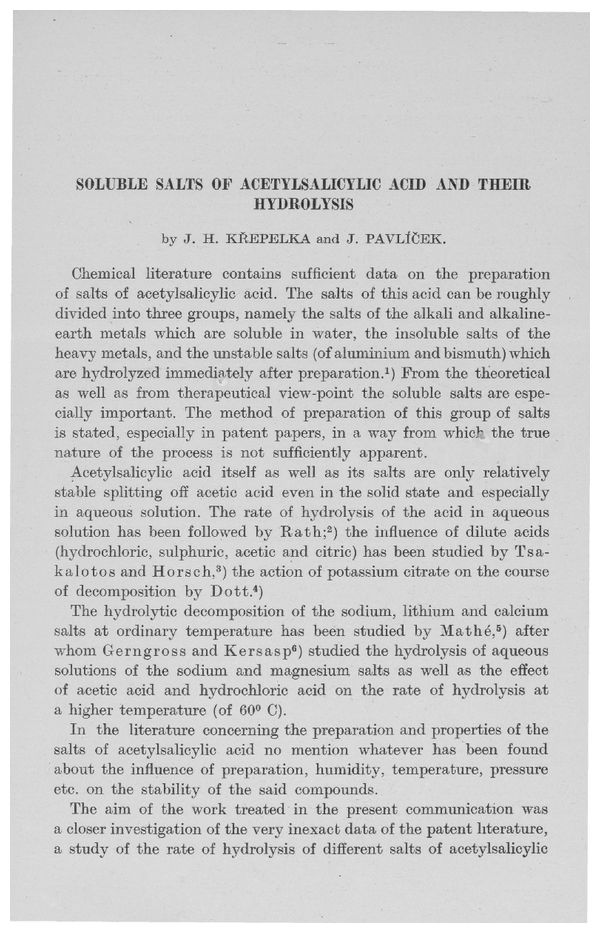 Soluble salts of acetylsalicylic acid and their hydrolysis