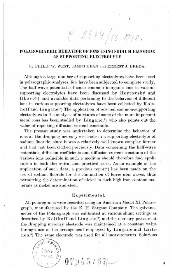 Polarographic behavior of ions using sodium fluoride as supporting electrolyte