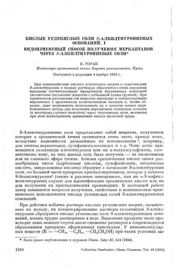 S-Alkylisothiuronium hydrogen carbonates. I. Modified preparation of mercaptans from S-alkylisothiuronium salts