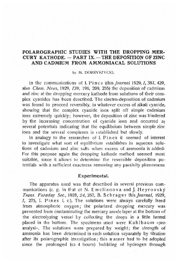 This article is part of serial Polarographic studies with the dropping mercury kathode.
