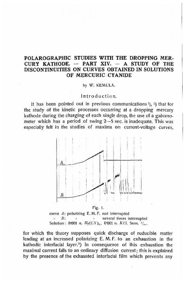 Polarographic studies with the dropping mercury kathode. Part XIV. A study of the discontinuities on curves obtained in solutions of mercuric cyanide