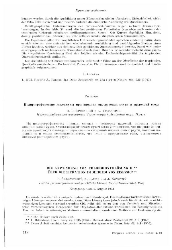 Die Anwendung von Chlordioxydlösung II. Über die Titration im Medium von Eisessig