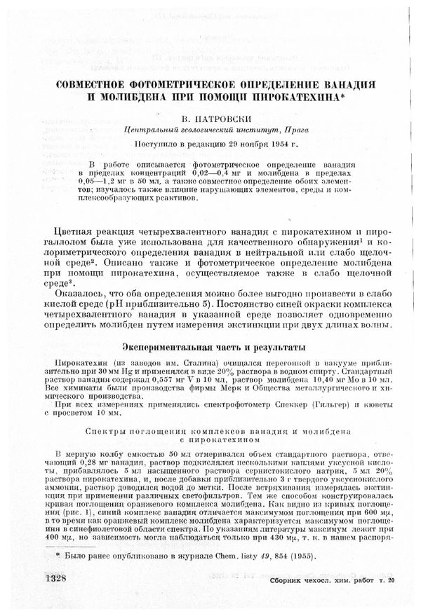 Die gleichzeitige Bestimmung von Vanadin und Molybdän mittels Brenzcatechin