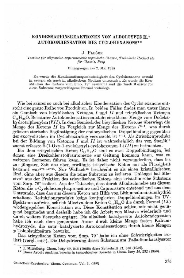 Kondensationsreaktionen von Aldoltypus II. Autokondensation des Cyclohexanons