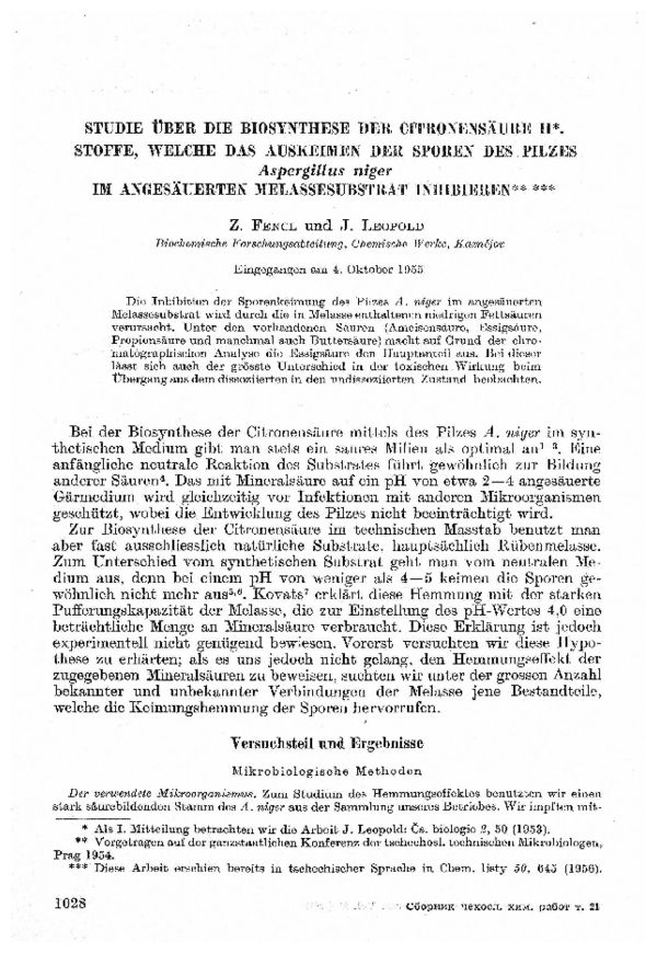 This article is part of serial Studie über die Biosynthese der Citronensäure.