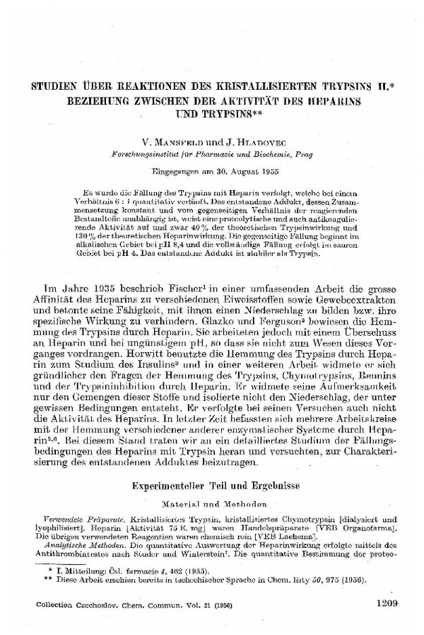 This article is part of serial Studien über Reaktionen des kristallisierten Trypsins.