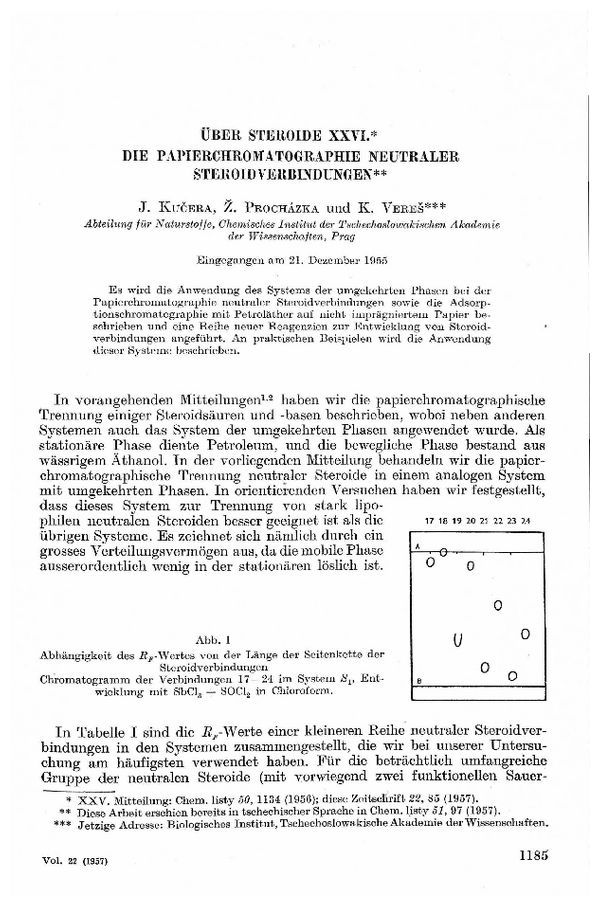 Über Steroide XXVI. Die Papierchromatographie neutraler Steroidverbindungen