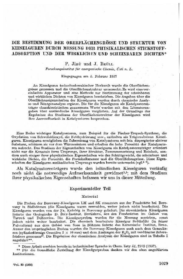 Die Bestimmung der Oberflächengrösse und Struktur von Kieselguren durch Messung der physikalischen Stickstoffadsorption und der wirklichen und scheinbaren Dichten