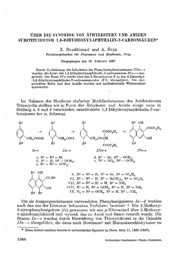 Über die Synthese von Äthylestern und Amiden substituierter 1,3-Dihydroxynaphthalin-2-carbonsäuren
