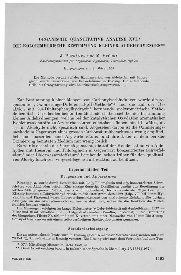 Organische quantitative Analyse XVI. Die kolorimetrische Bestimmung kleiner Aldehydmengen