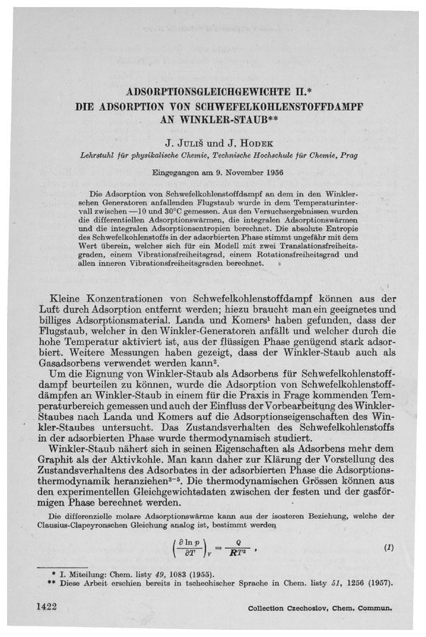 Adsorptionsgleichgewichte II. Die adsorption von Schwefelkohlenstoffdampf an Winkler-Staub