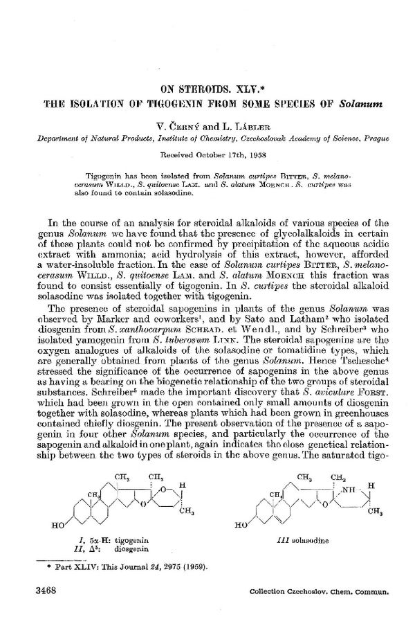 On steroids. XLV. The isolation of tigogenin from some species of Solanum