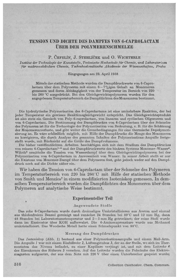 P. Čefelín, J. Stehlíček and O. Wichterle