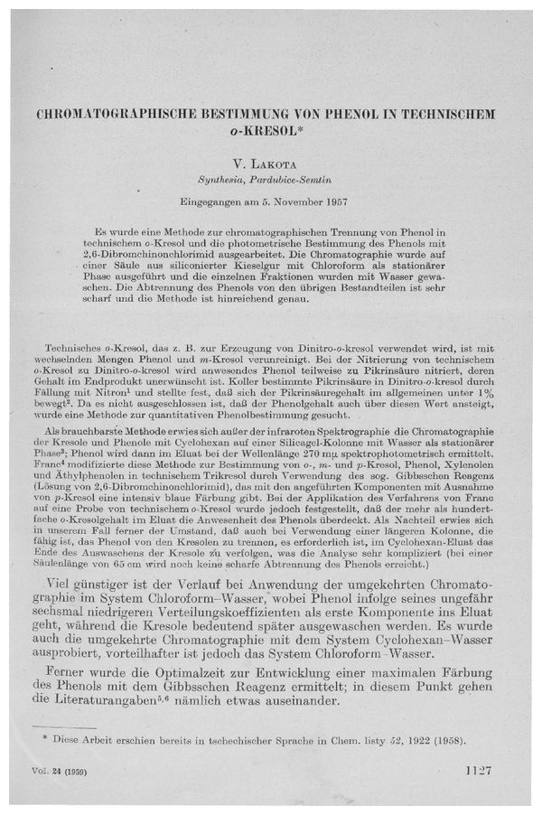 Chromatographische Bestimmung von Phenol in technischem o-Kresol