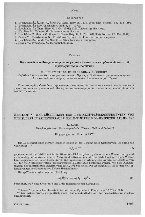 Bestimmung der Löslichkeit und der Aktivitätskoeffizienten von Bleisulfat in Salpetersäure bei 25 ºC mittels markierter Atome 35S