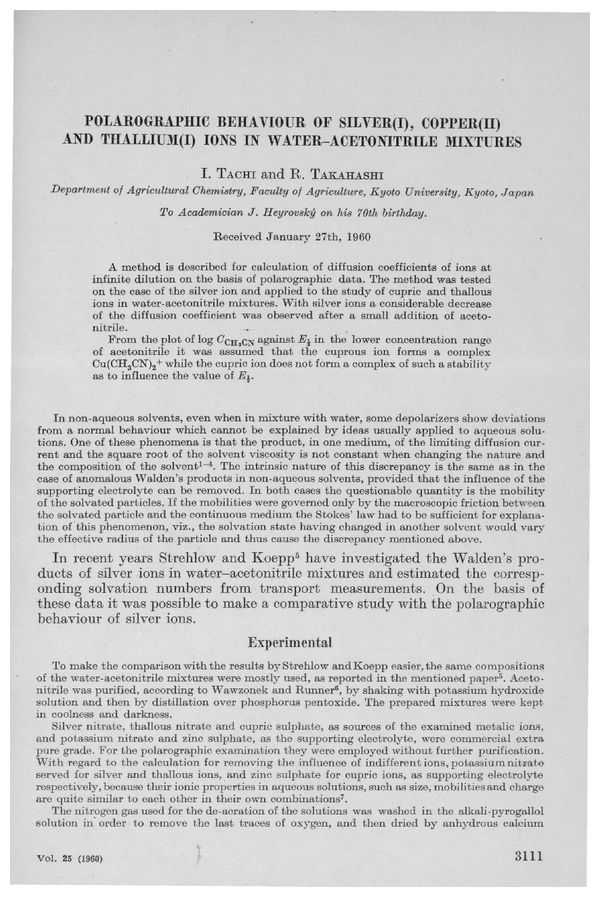 Polarographic behaviour of silver(I), copper(II) and thallium(I) ions in water-acetonitrile mixtures