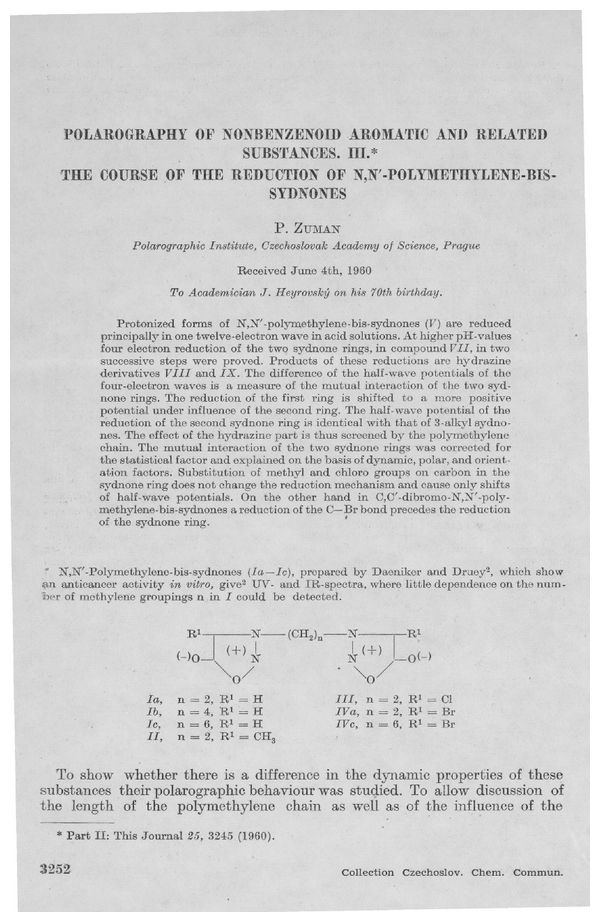 Polarography of nonbenzenoid aromatic and related substances. III. The course of the reduction of N,N'-polymethylene-bis-sydnones