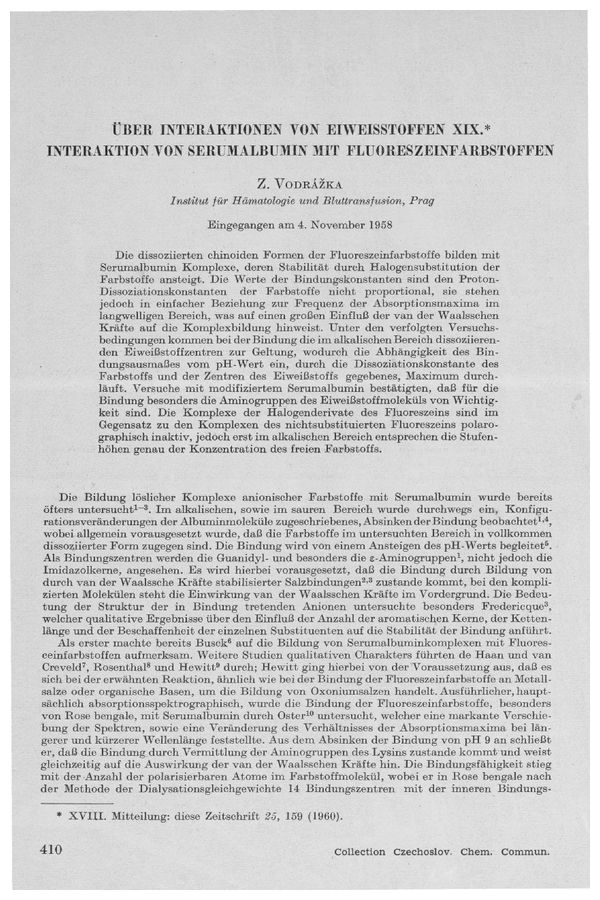 Über Interaktionen von Eiweisstoffen XIX. Interaktion von Serumalbumin mit Fluoreszeinfarbstoffen