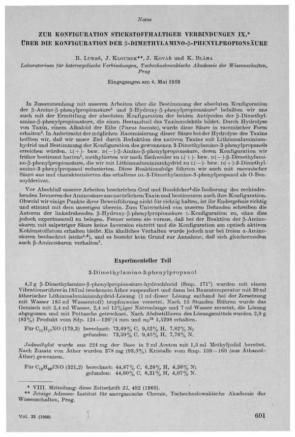 R. Lukeš, J. Kloubek, J. Kovář and K. Bláha