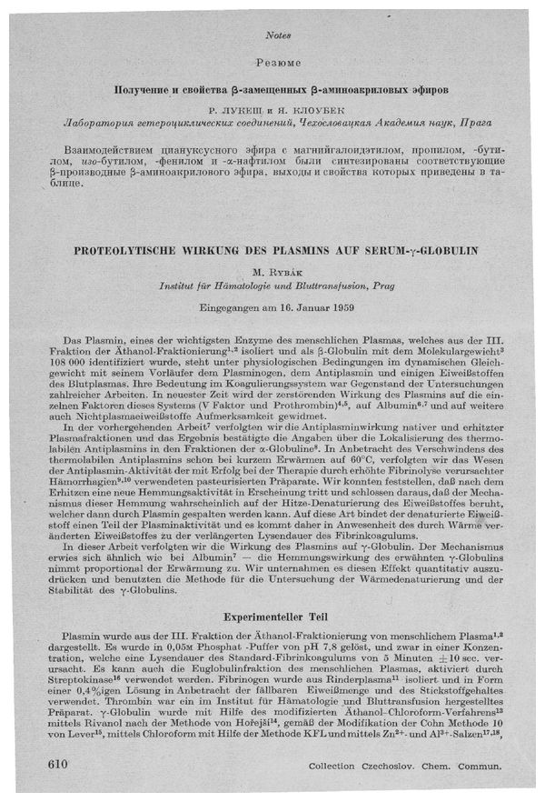 Proteolytische Wirkung des Plasmins auf Serum-γ-globulin