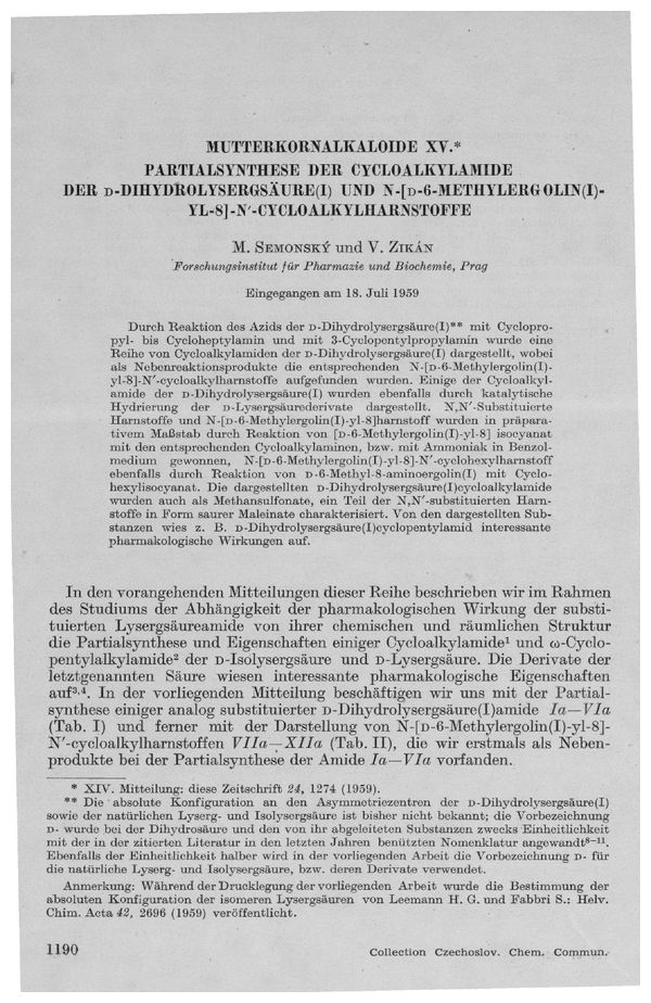 Mutterkornalkaloide XV. Partialsynthese der Cycloalkylamide der D-Dihydrolysergsäure(I) und N-[D-6-Methylergolin(I)-yl-8]-N'-cycloalkylharnstoffe