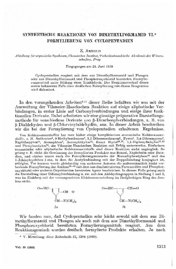 Synthetische Reaktionen von Dimethylformamid VI. Formylierung von Cyclopentadien