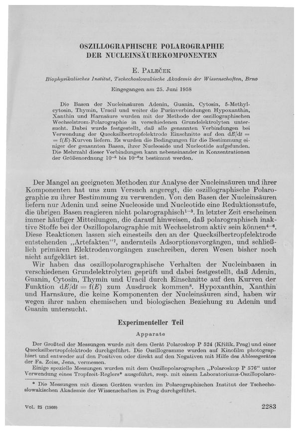 Oszillographische Polarographie der Nucleinsäurekomponenten
