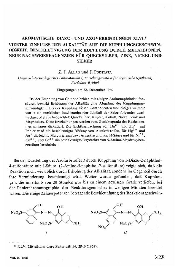 Aromatische Diazo- und Azoverbindungen XLVI. Vierter Einfluss der Alkalität auf die Kupplungsgeschwindigkeit. Beschleunigung der Kupplung durch Metallionen. Neue Nachweisreagenzien für Quecksilber, Zink, Nickel und Silber