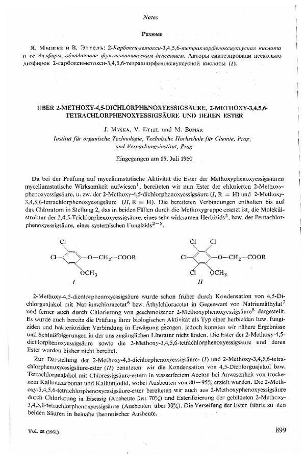 Über 2-Methoxy-4,5-dichlorphenoxyessigsäure, 2-Methoxy-3,4,5,6-tetrachlorphenoxyessigsäure und deren Ester
