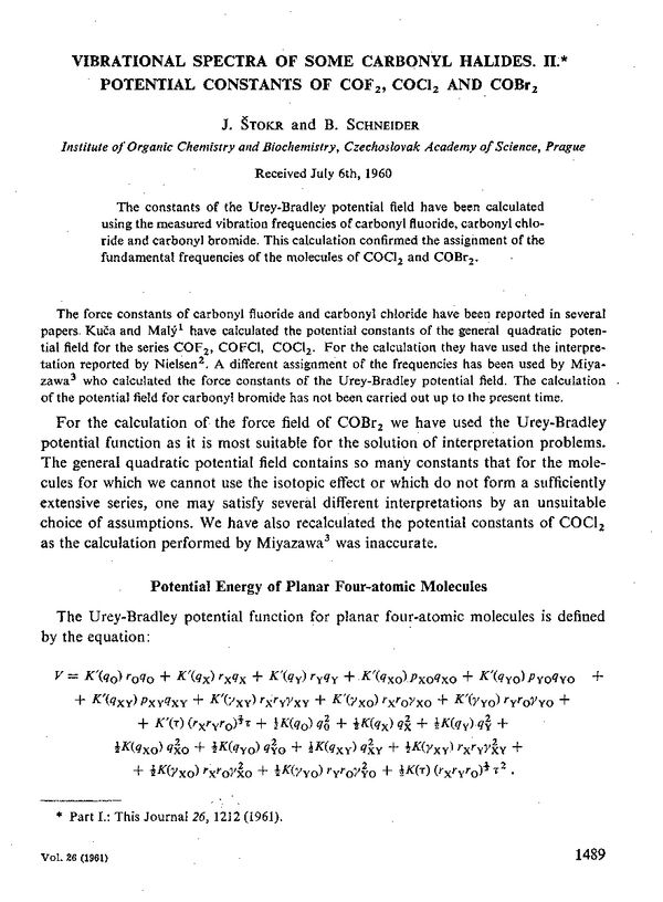 This article is part of serial Vibrational spectra of some carbonyl halides.