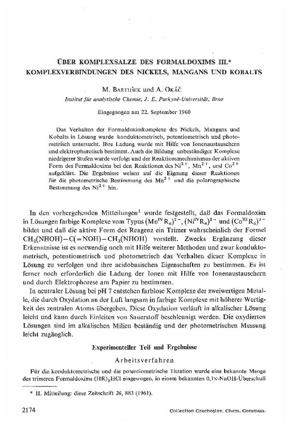 Über Komplexsalze des Formaldoxims III. Komplexverbindungen des Nickels, Mangans und Kobalts