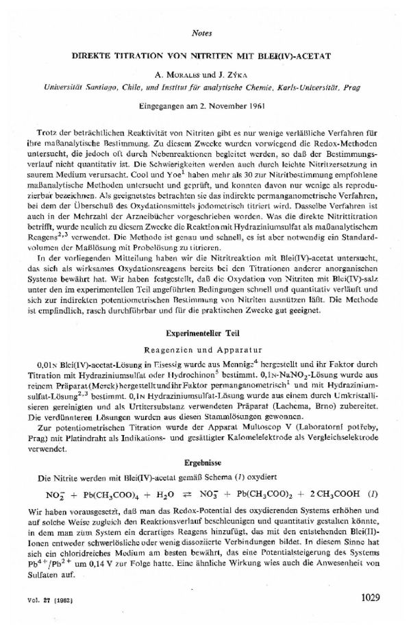 Direkte Titration von Nitriten mit Blei(IV)-acetat