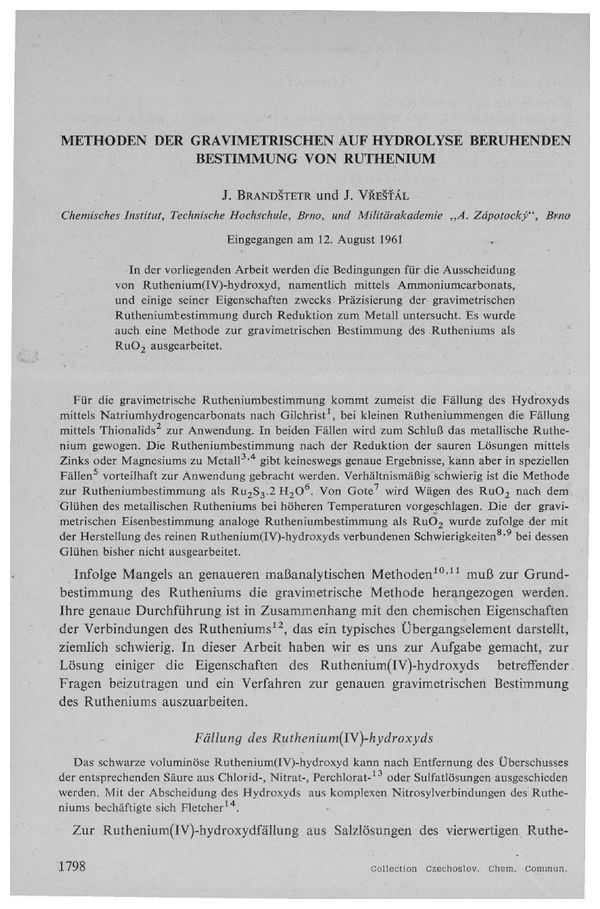 Methoden der gravimetrischen auf Hydrolyse beruhenden Bestimmung von Ruthenium