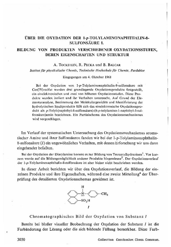 Über die Oxydation der 1-p-Tolylaminonaphthalin-8-sulfonsäure I. Bildung von Produkten verschiedener Oxydationsstufen, deren Eigenschaften und Struktur