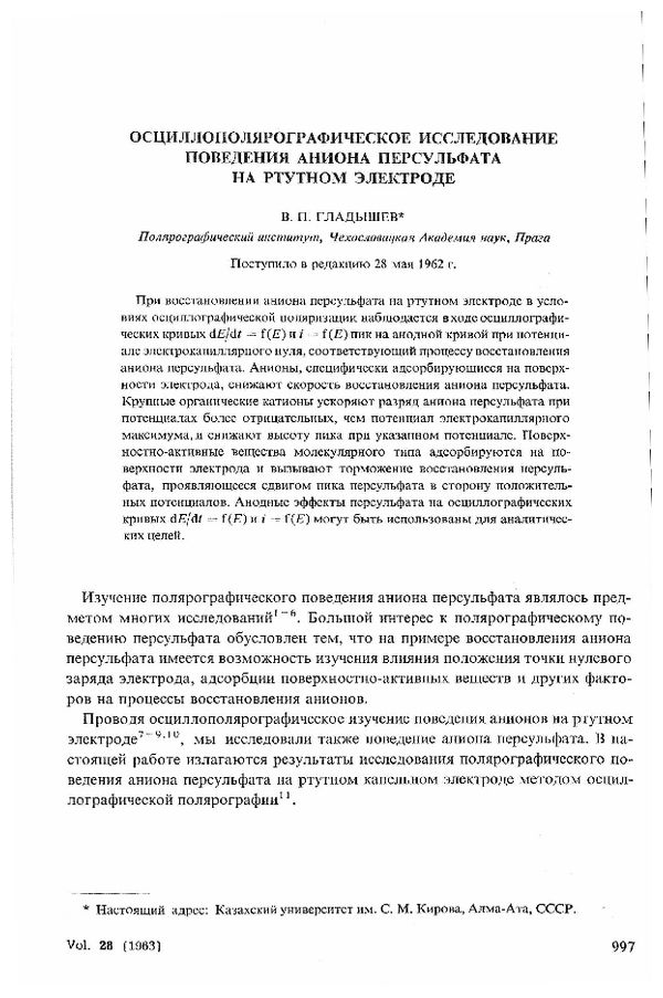 Oscillographic investigation of the behaviour of persulfate anion on mercury dropping electrode