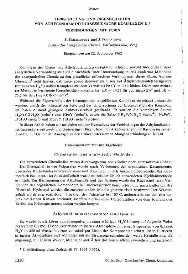 Herstellung und Eigenschaften von Äthylendiamintetraessigsäure-Komplexen II. Verbindungen mit Eisen