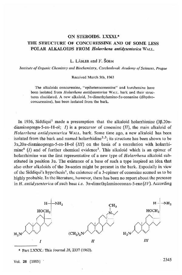 On steroids. LXXXI. The structure of concuressine and of some less polar alkaloids from Holarrhena antidysenterica WALL.