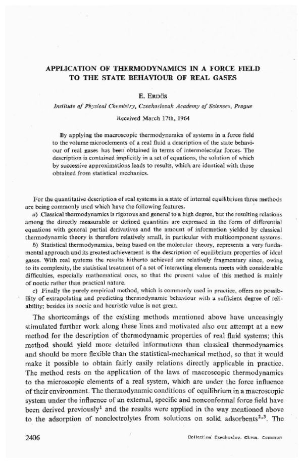 Application of thermodynamics in a force field to the state behaviour of real gases