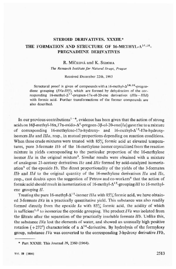 Steroid derivatives. XXXIII. The formation and structure of 16-methyl-Δ14,16- pregnadiene derivatives