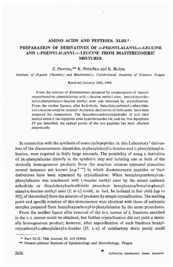 Amino acids and peptides. XLIII. Preparation of derivatives of D-phenylalanyl-L-leucine and L-phenylalanyl-L-leucine from diastereomeric mixtures