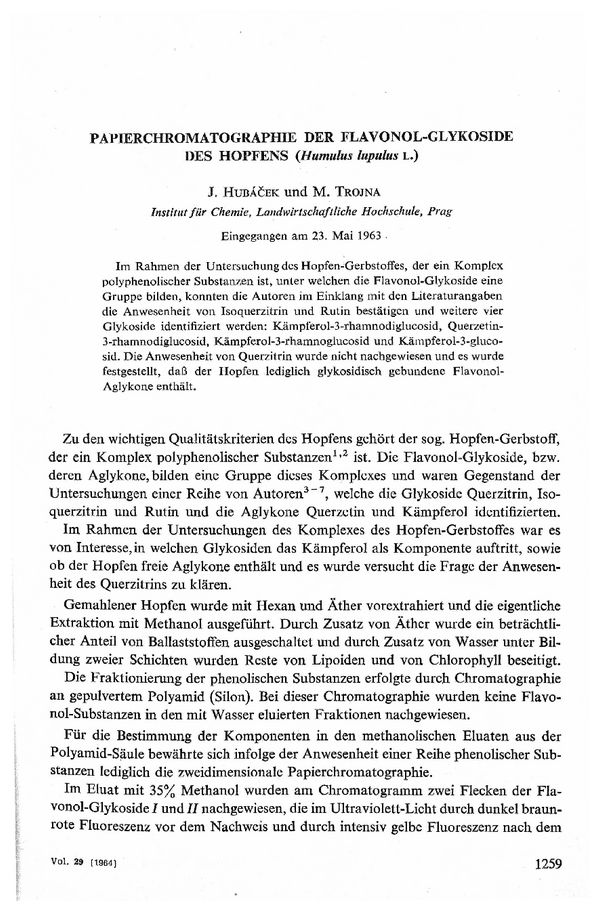 Papierchromatographie der Flavonol-glykoside des Hopfens (Humulus lupulus L.)