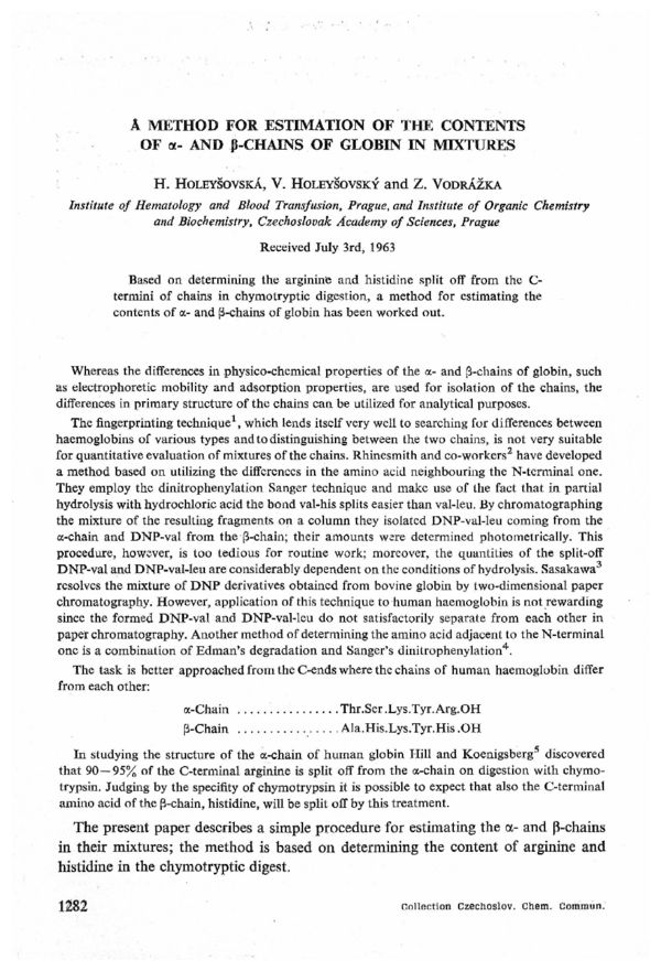 A method for estimation of the contents of α- and β-chains of globin in mixtures