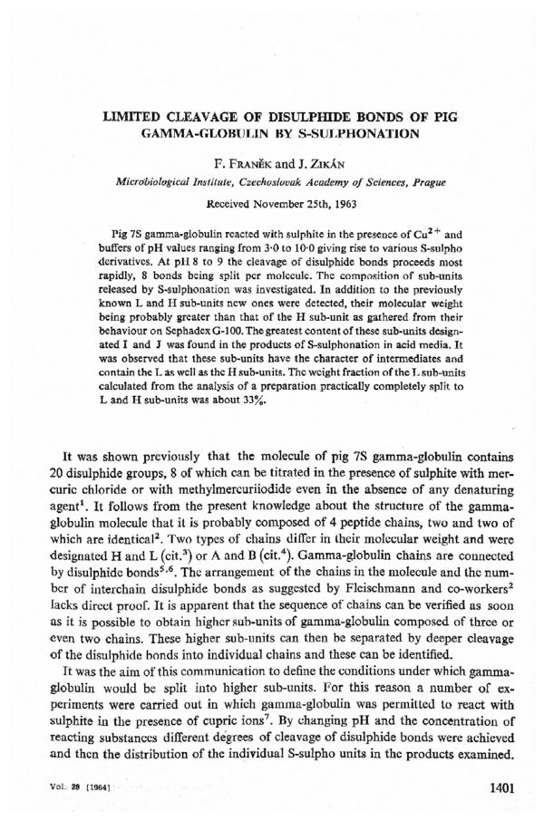 Limited cleavage of disulphide bonds of pig gamma-globulin by S-sulphonation