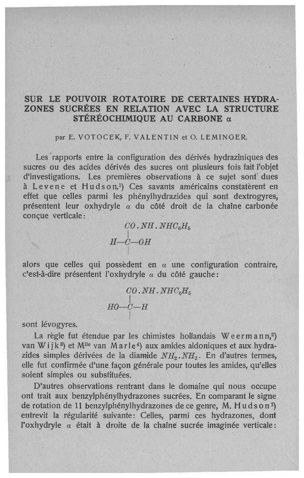 Sur le pouvoir rotatoire de certaines hydrazones sucrées en relation avec la structure stéréochimique au carbone α