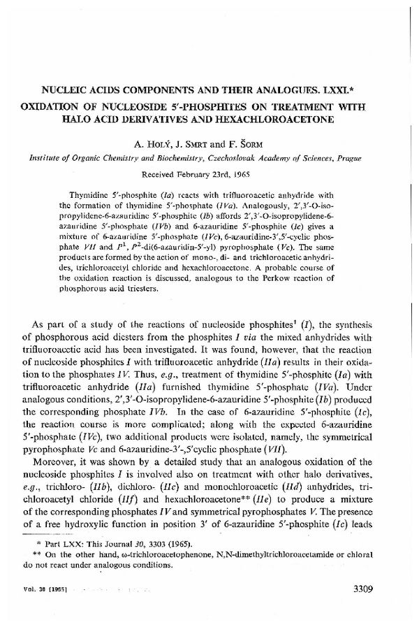 Nucleic acids components and their analogues. LXXI. Oxidation of nucleoside 5'-phosphites on treatment with halo acid derivatives and hexachloroacetone