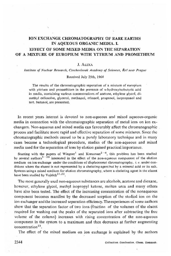 This article is part of serial Ion exchange chromatography of rare earths in aqueous organic media.