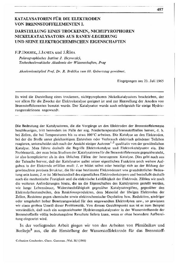 Katalysatoren für die Elektroden von Brennstoffelementen I. Darstellung eines trockenen, nichtpyrophoren Nickelkatalysators aus Raney-Legierung und seine elektrochemischen Eigenschaften