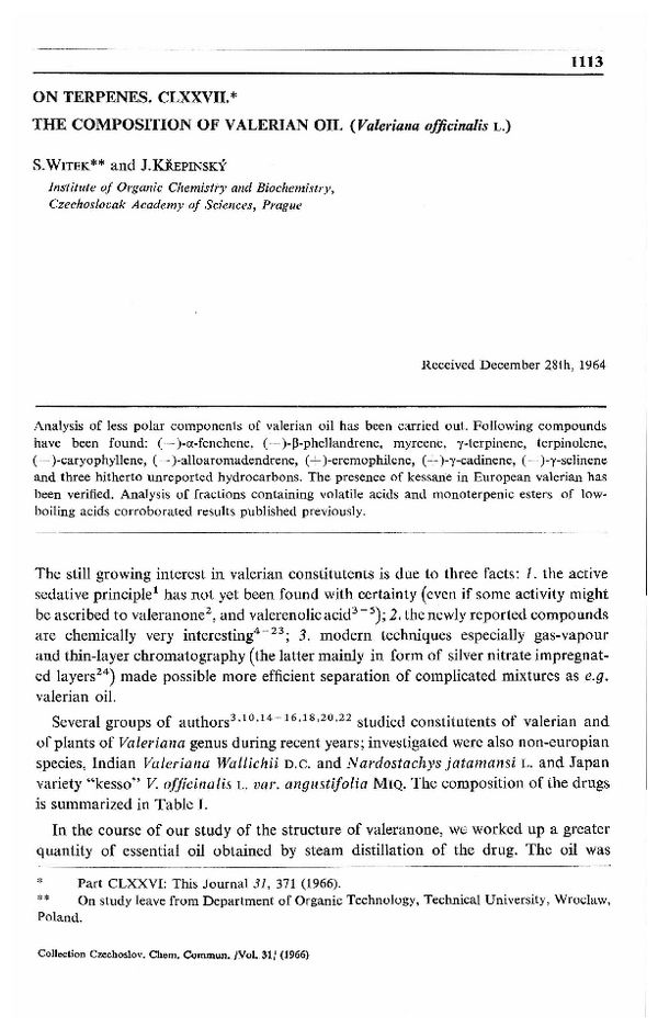 On terpenes. CLXXVII. The composition of valerian oil (Valeriana officinalis L.)