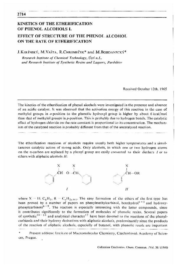 This article is part of serial Kinetics of the etherification of phenol alcohols.