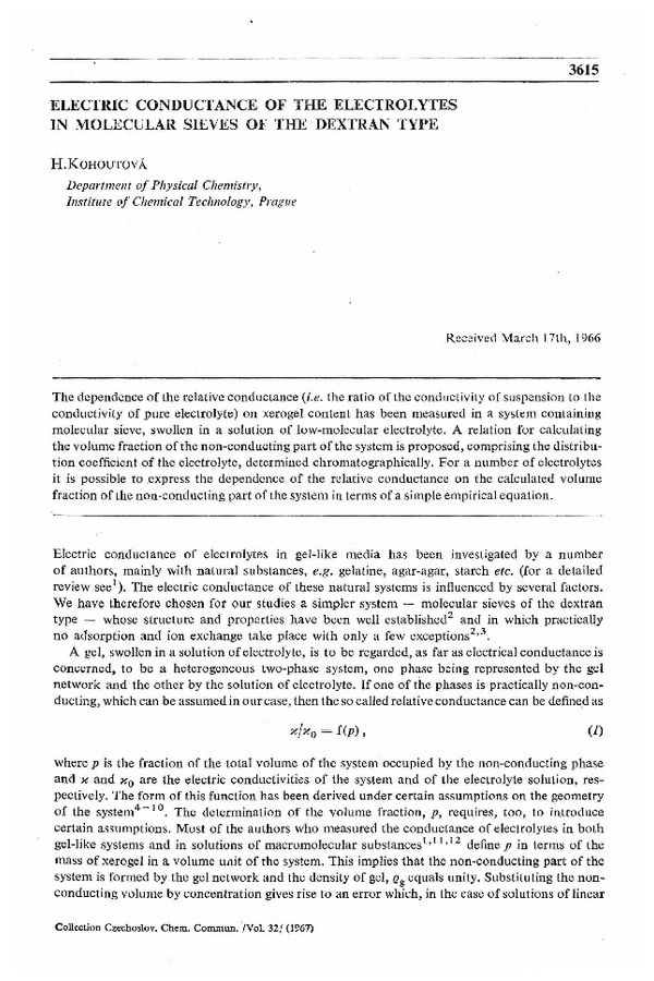 Electric conductance of the electrolytes in molecular sieves of the dextran type
